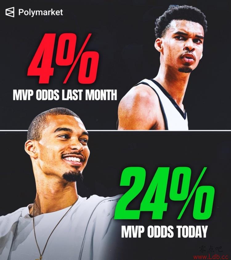 据PolymarketSports报道,在揭幕战打出40分15篮板1助攻1抢断3盖帽的数据后,文班亚马的MVP概率激增