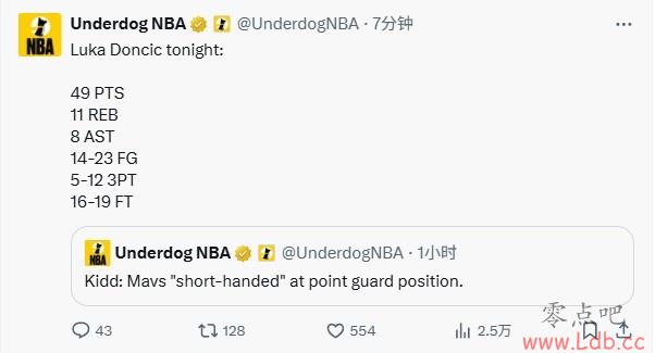 - 25日 NBA常规赛,湖人128-110大胜森林狼