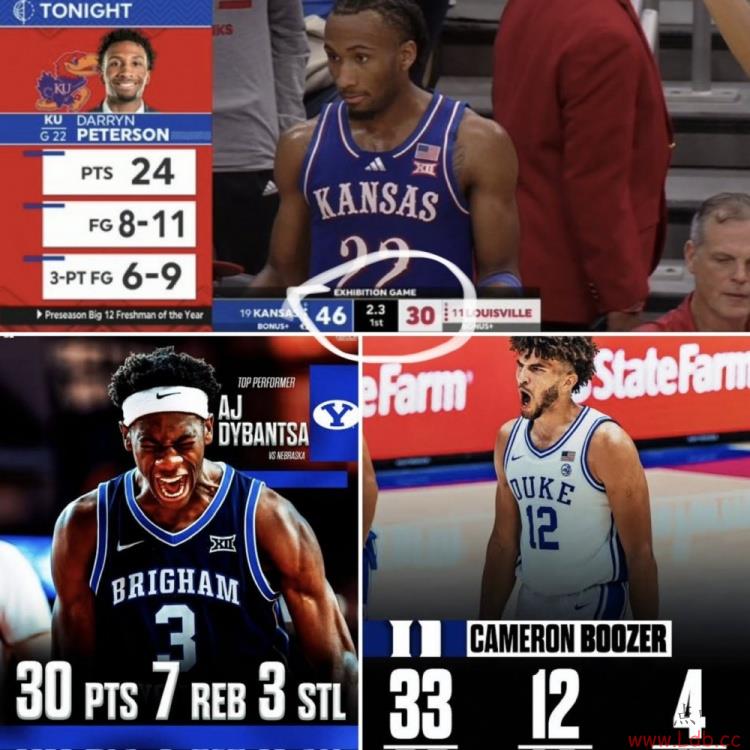 零点吧10月25日讯 NCAA疯狂三月官推晒出明年三大状元热门季前赛首秀数据: