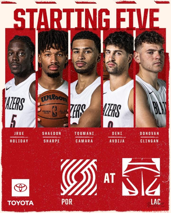 零点吧10月27日讯 上午9点,NBA常规赛,开拓者客场对阵快船。