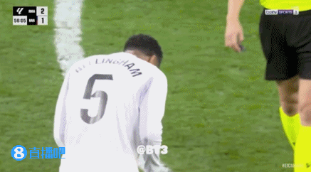 不愧是你??佩德里被贝林放倒痛苦摸喉,后者随即模仿掐自己脖子