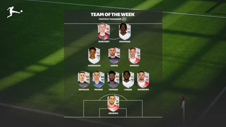 德甲官方第8轮最佳阵:莱比锡药厂各3将,基米希、伯卡特在列
