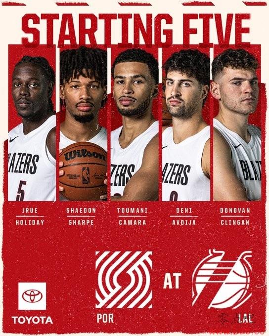 背靠背!开拓者首发:霍勒迪、夏普、卡马拉、阿夫迪亚、克林根
