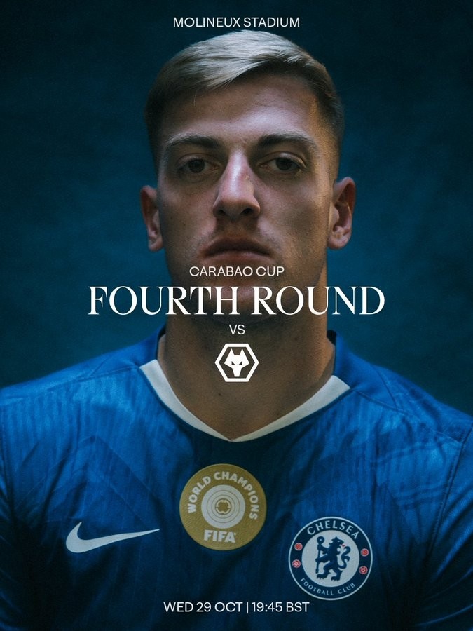 切尔西晒海报预热联赛杯战狼队,德拉普单人出镜