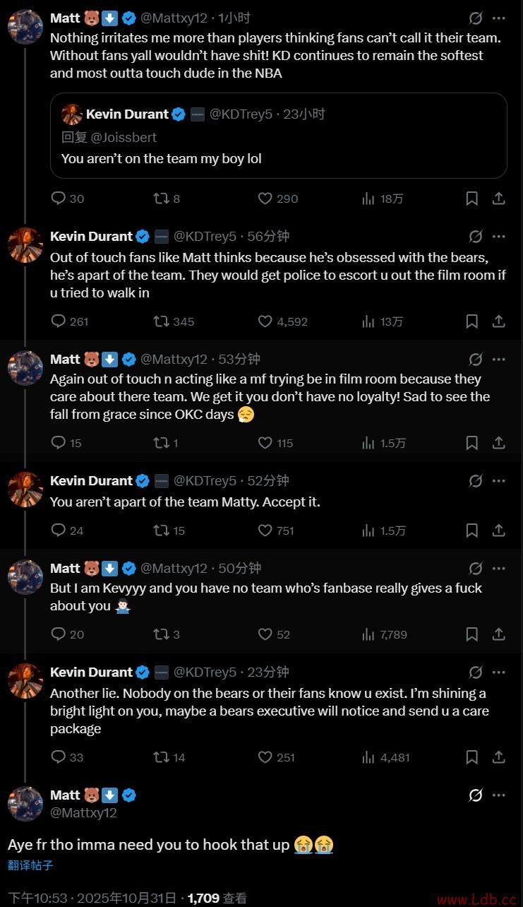 零点吧10月31日讯 今日杜兰特继续在社媒和网友对线。