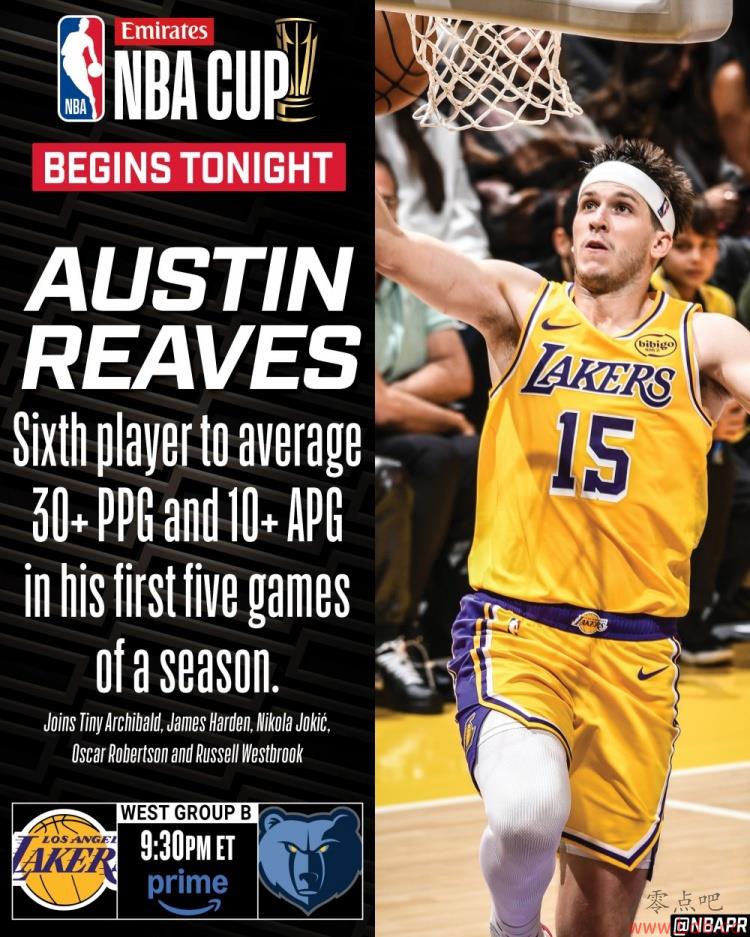 零点吧11月1日讯 NBA官方账号NBA Communications更新动态,晒出了里夫斯的数据。里夫斯是历史上第六位在赛季前五场比赛中场均达到30+得分和10+助攻的球员。