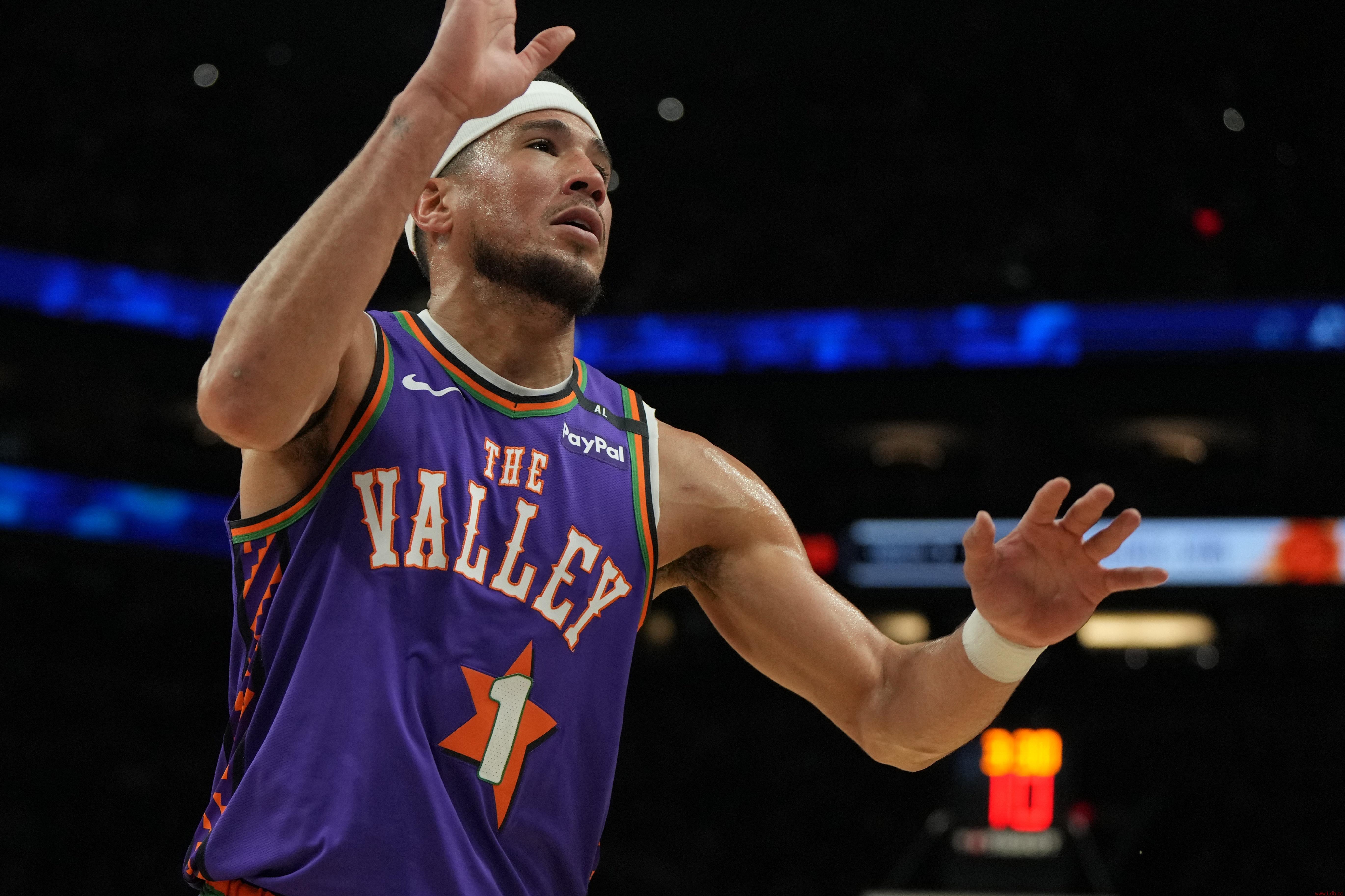 本场比赛,布克发挥出色,进攻端里突外投效率在线,且能串联全队进攻,他首发出战39分钟,23中13,三分9中6,罚球5中4砍下36分5篮板9助攻,正负值+19。