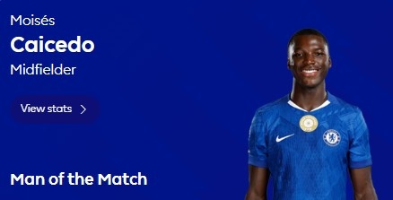 零点吧足球11月2日讯 2025-26赛季英超第10轮焦点战,切尔西1-0战胜热刺。凯塞多首发出战,赛后被评为全场最佳球员。