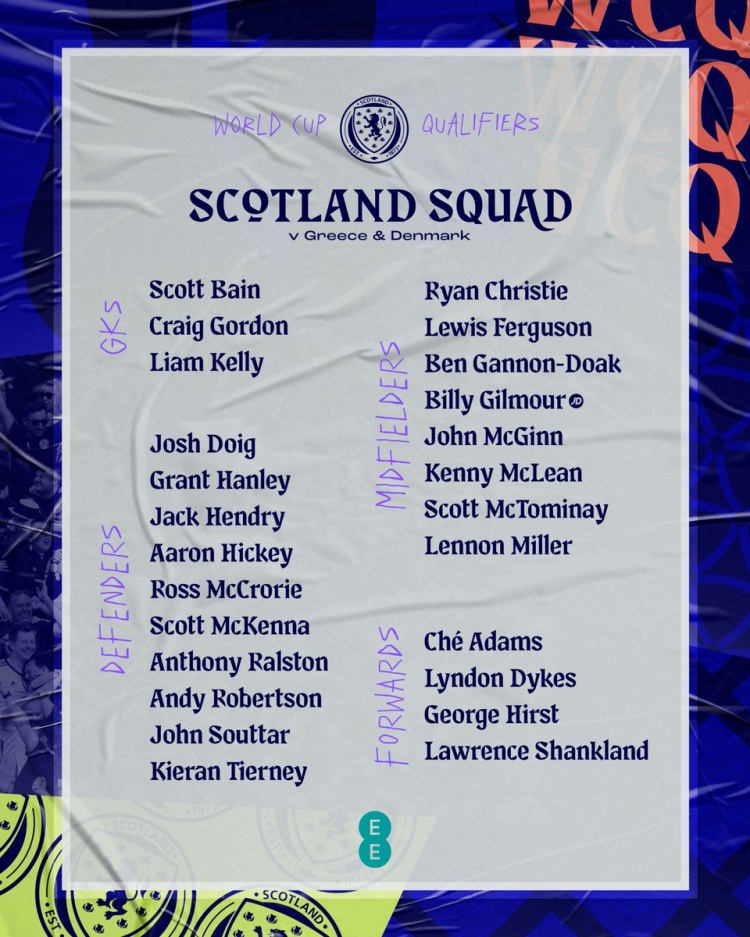 苏格兰名单:罗伯逊、麦金、蒂尔尼、麦克托米奈、吉尔莫在列
