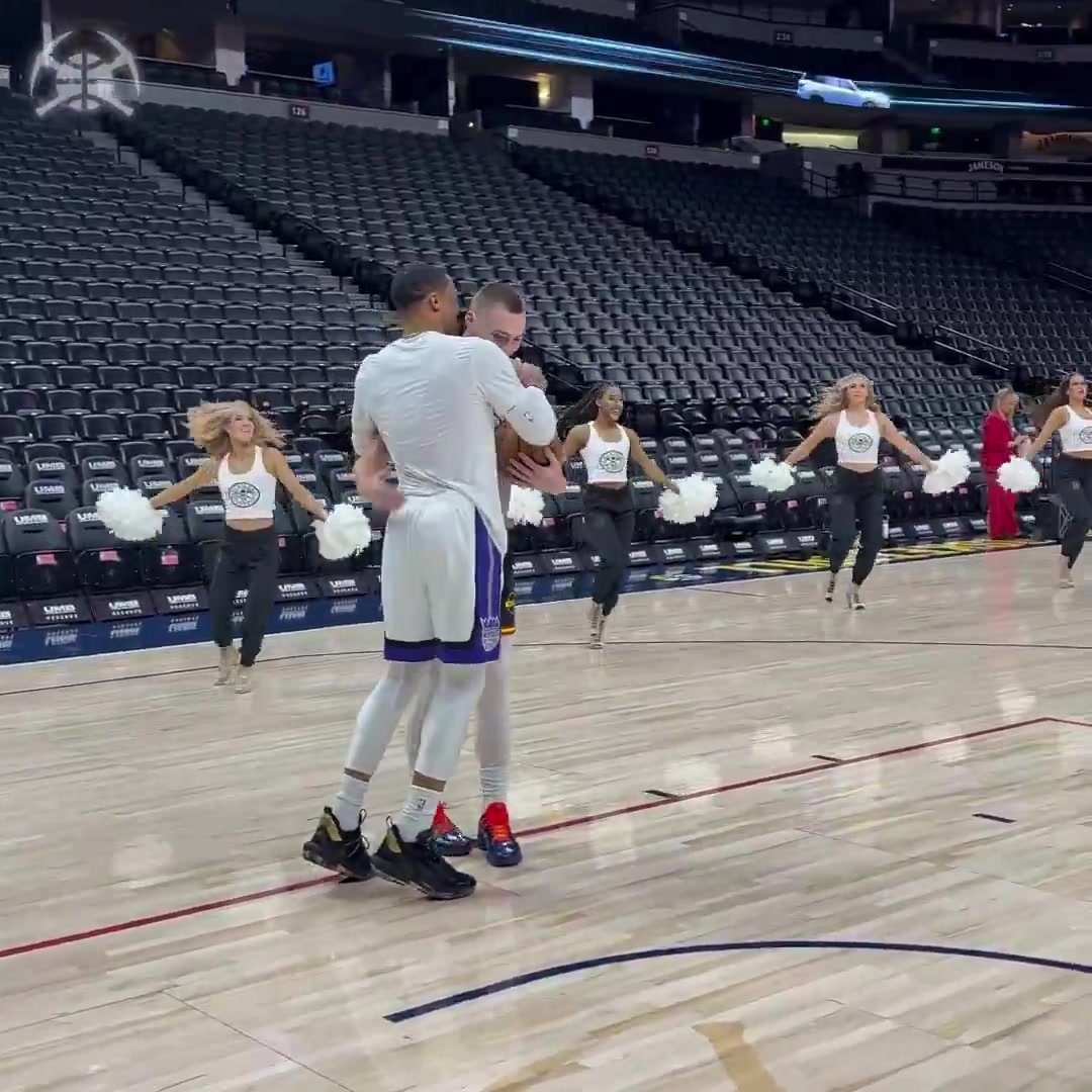 重回丹佛&对阵老东家!威少赛前训练和布劳恩拥抱寒暄