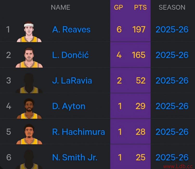 湖人本季已6人砍25+:里夫斯&东契奇共10次 艾顿/八村/史密斯1次