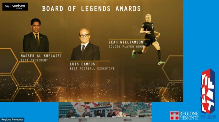 阿森纳女足后卫莉娅-威廉姆森被评为2025女足金球员奖,巴黎主席纳赛尔被评为最佳主席,巴黎体育总监坎波斯被评为最佳足球管理者。