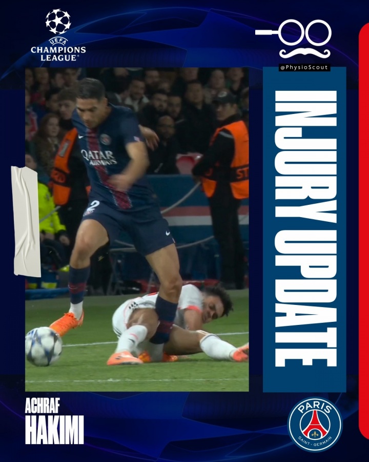 零点吧足球11月05日讯 专注于足球球员领域的伤病分析师帖子Physio Scout分析了阿什拉夫的伤情。
