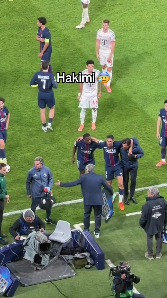 在巴黎对阵拜仁的比赛中,阿什拉夫因小腿受伤被迫离场。
