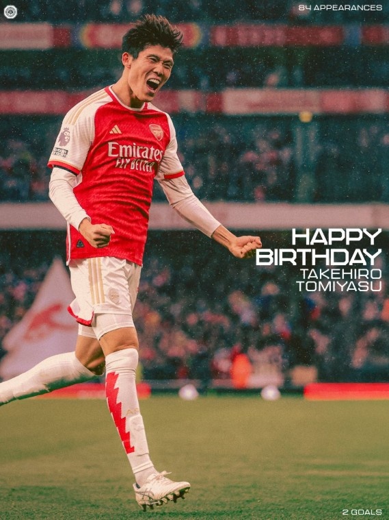 零点吧足球11月5日讯 阿森纳官方发文,为旧将富安健洋庆祝27岁生日。