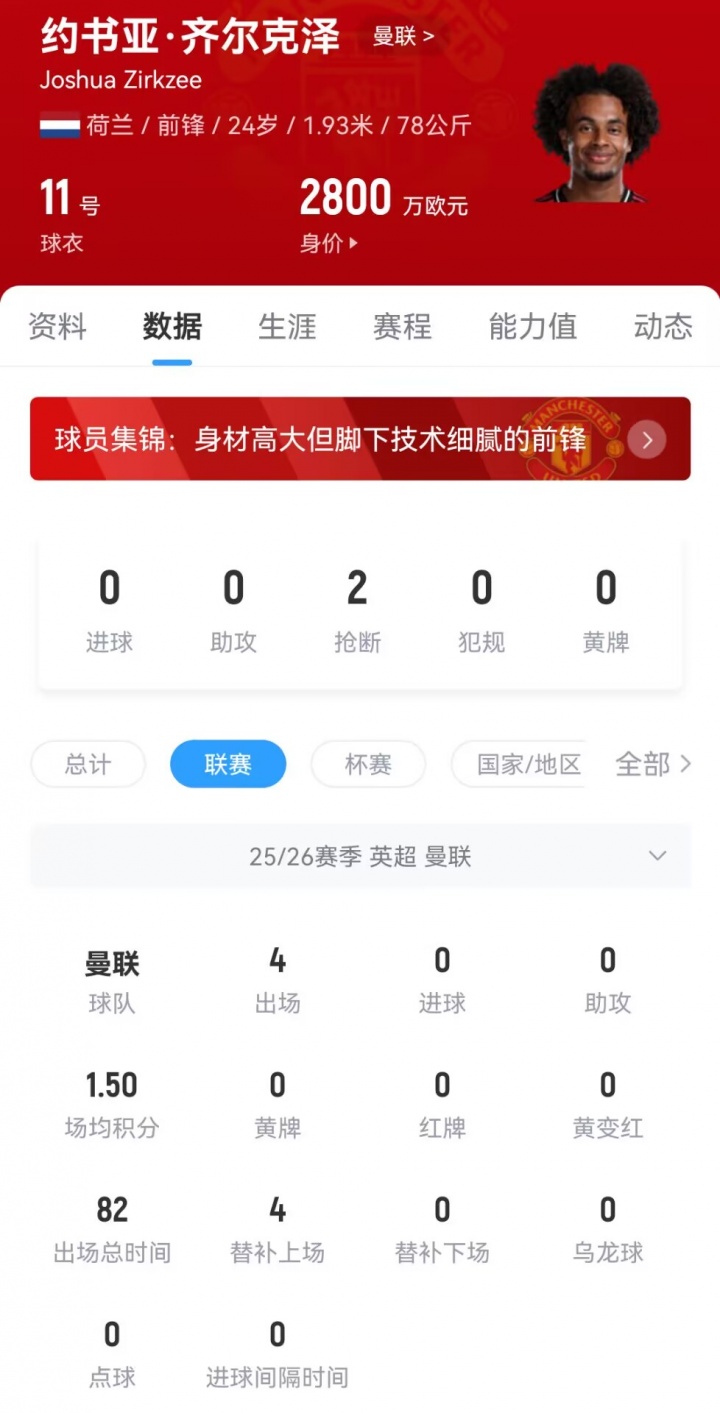 24岁的齐尔克泽去年夏窗以4250万欧元价格从博洛尼亚加盟曼联,本赛季为曼联在联赛出场4次,还没有进球或助攻。此前有报道称他冬窗有望离队,回到意甲。