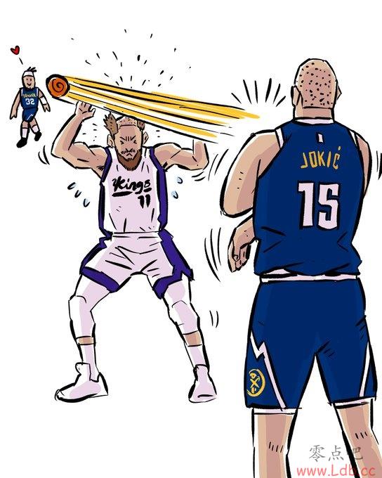 在之前掘金对阵国王的比赛中,约基奇贴着多曼塔斯·萨博尼斯头皮传球的一幕,被漫画家JayKim创作出一幅搞笑漫画
