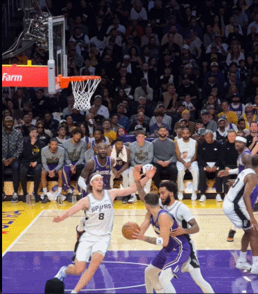 马刺客场挑战湖人,文班亚马第四节欧洲步撞...