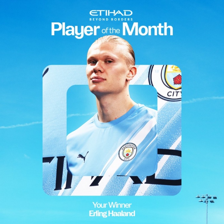 零点吧足球11月7日讯 曼城官方消息,经球迷投票,哈兰德当选10月队内最佳球员。