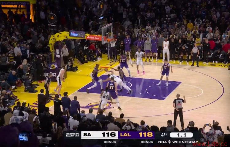 零点吧11月7日讯 昨天一场NBA常规赛,湖人在主场以118-116击败马刺。今天,NBA官方公布了最后两分钟裁判报告。有一次误判。