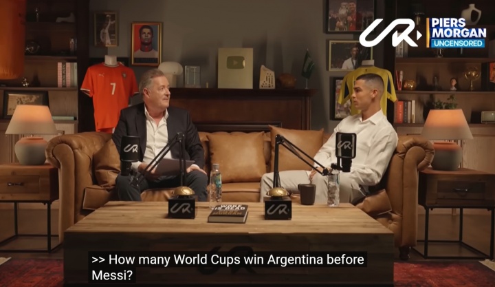 C罗表示,“在梅西之前,阿根廷拿过几次世界杯?两次对吧?但这很正常,这些传统强队本就习惯赢得大赛。如果巴西夺冠没人会惊讶,对。但要是葡萄牙夺世界杯冠军,这完全可能,那才真会震撼世界。但我内心并不认同这种标准,当然我想赢,每个竞争者都渴望胜利。但老实说,我不会因此改变对足球的认知。”