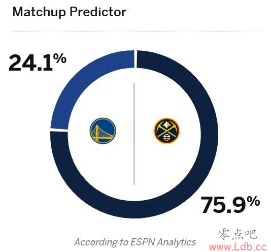 今天,ESPN预测本场比赛胜率,掘金75.9%占优,勇士仅24.1%。