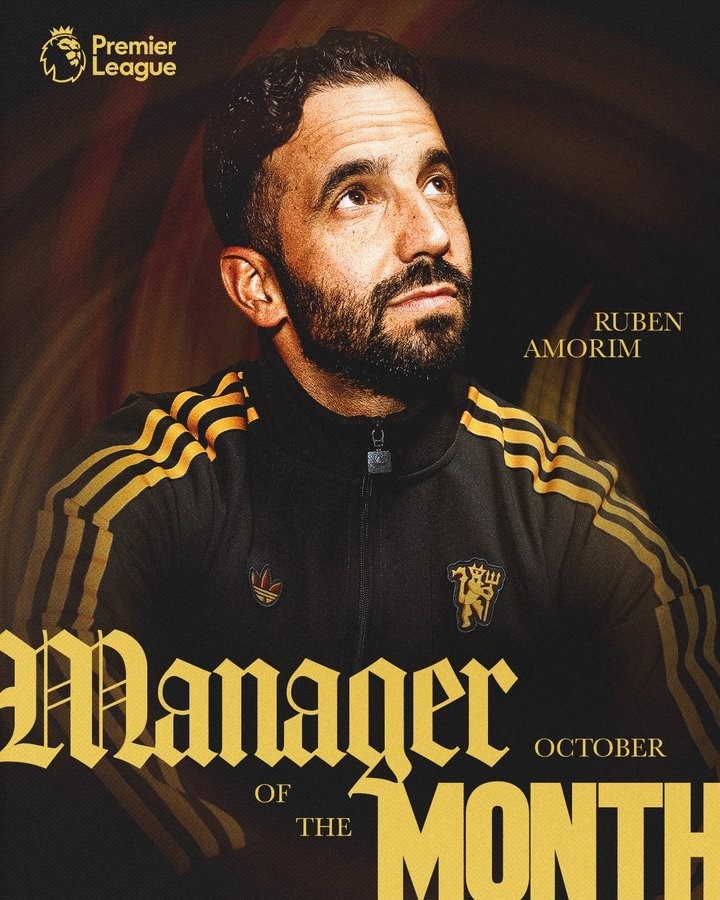 曼联官推写道:“我们会在斯特雷福德看台支持他~(注:此句为曼联球迷为阿莫林唱的赞歌歌词)阿莫林被评为英超10月最佳主教练!”