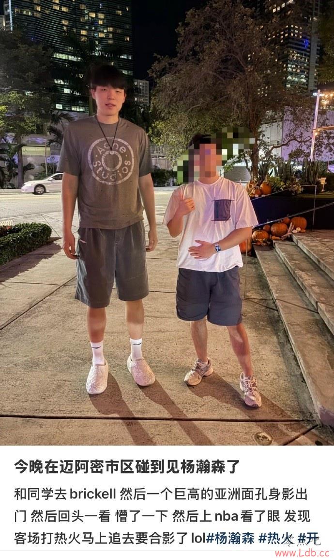 该球迷写道:“今晚在迈阿密市区碰到见杨瀚森了,和同学去brickell,然后一个巨高的亚洲面孔身影出门,然后回头一看,懵了一下,然后上NBA看了眼,发现客场打热火,马上追去要合影了lol。”