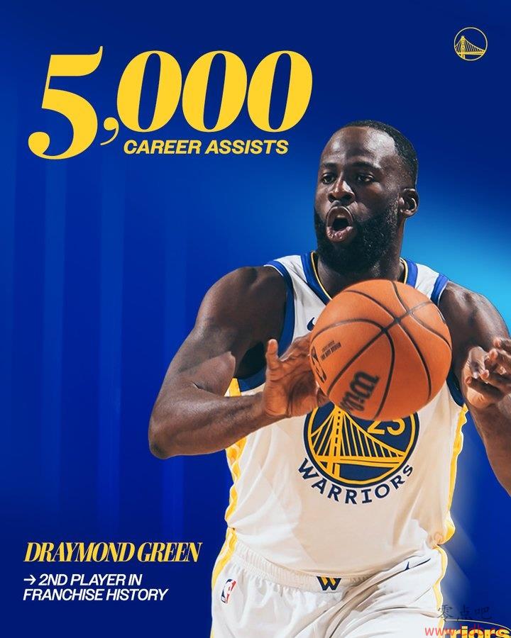 在勇士队史上,追梦排在助攻榜第2,库里以6574次居首。