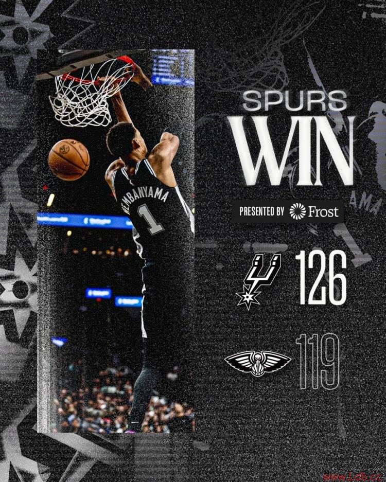 NBA常规赛,马刺主场126比119击败鹈鹕