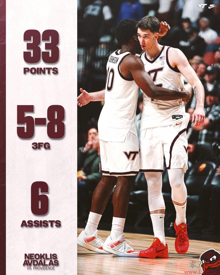 本场比赛,弗吉尼亚理工球员内奥克利斯·阿夫达拉斯(Neoklis Avdalas)23投13中,三分8中5 ,拿到33分5篮板6助攻。他也是球队自2022年亨特·卡图尔之后,第一位在客场比赛拿到30+得分的弗吉尼亚理工球员。