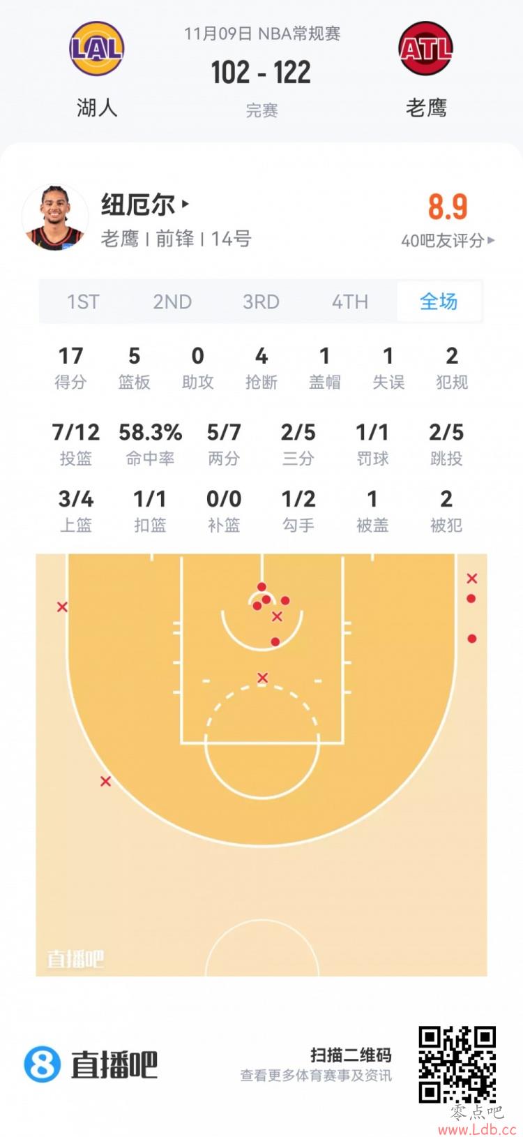 【菜鸟】纽厄尔17分4断抢懵湖人 弗拉格12分7板 埃奇库姆11分7板
