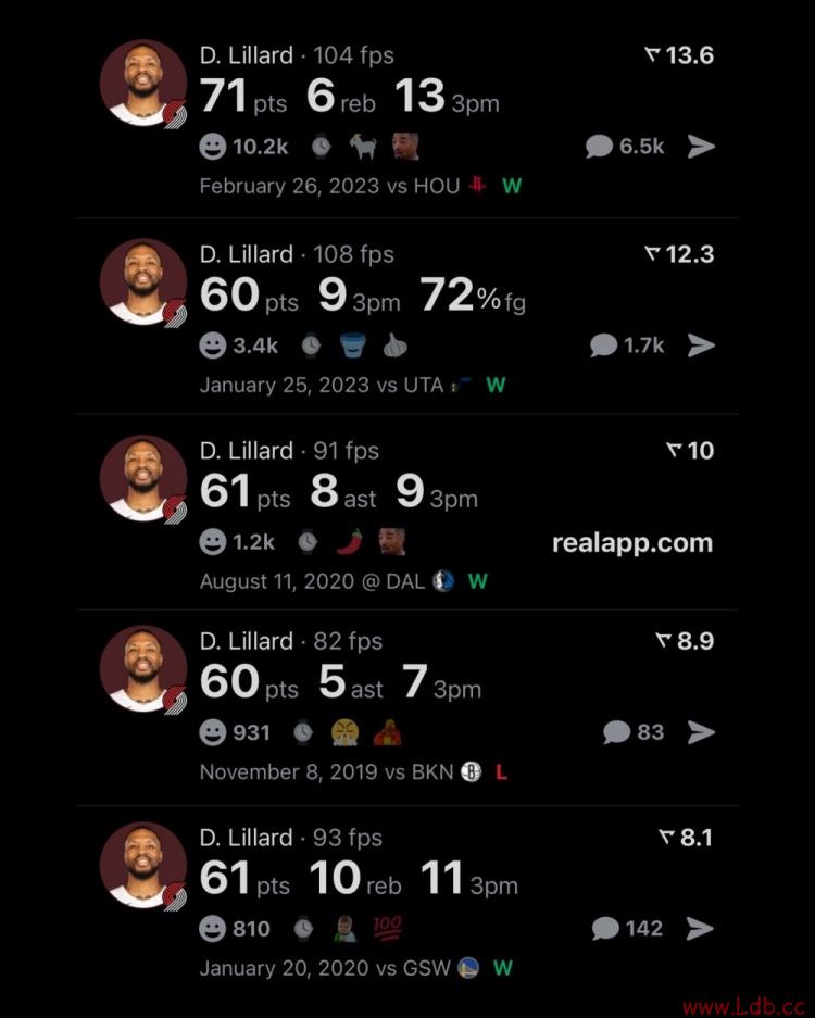 - 10日 数据媒体RealSports列出了NBA历史上单场得分...