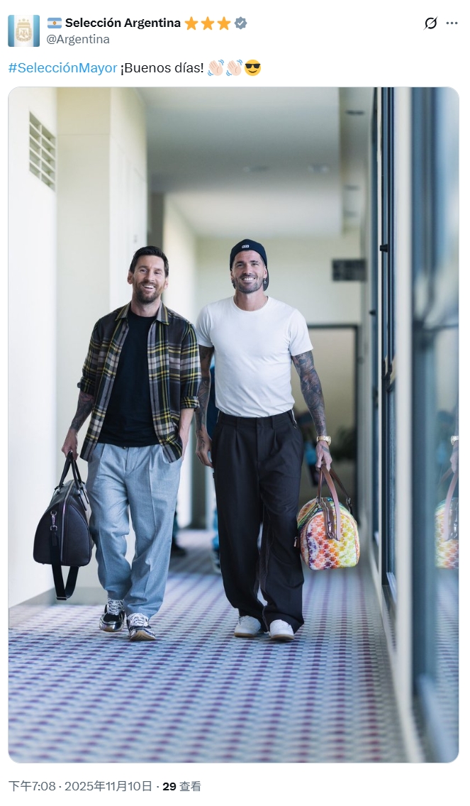 依旧德保镖!梅西与德保罗抵达阿根廷队集训营报到,备战安哥拉