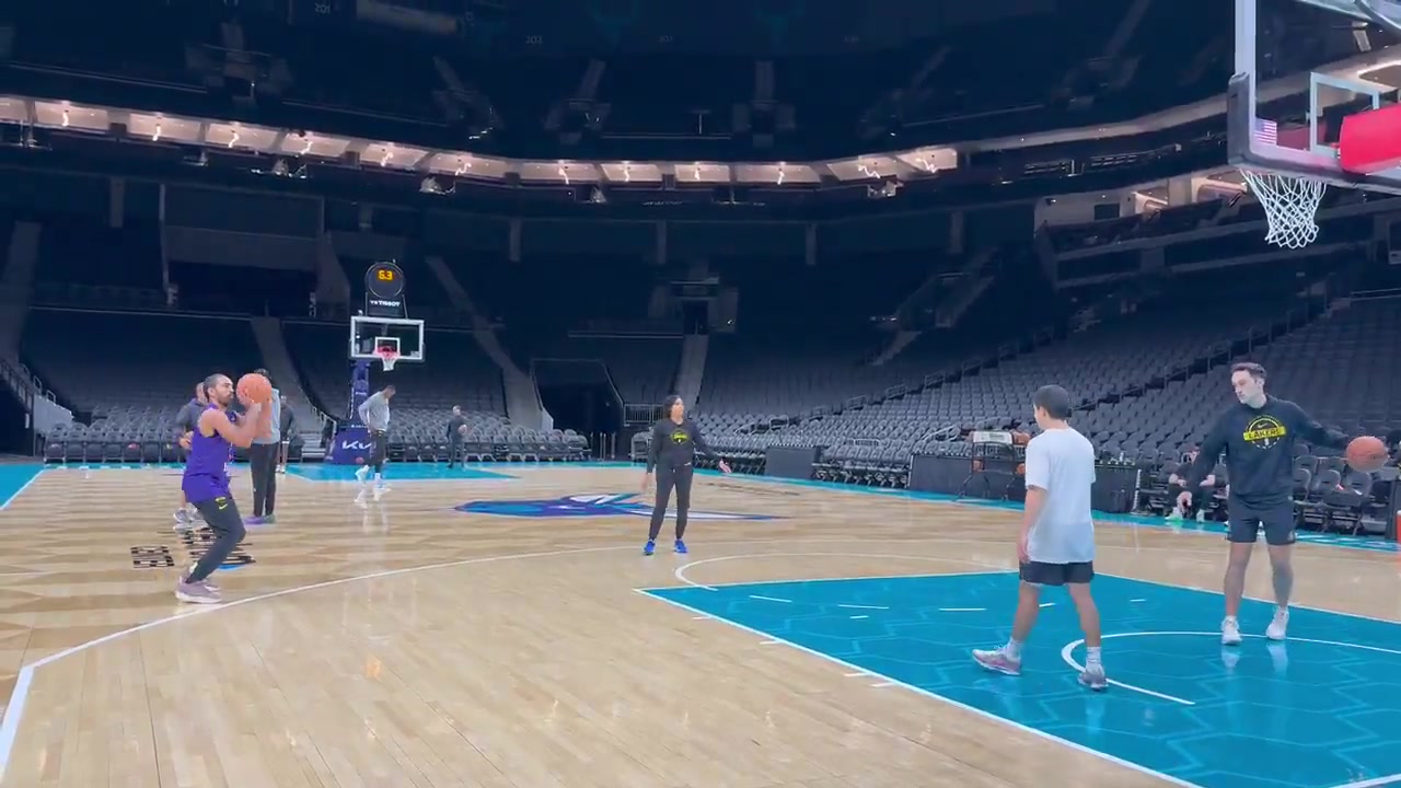 两位伤员!文森特和湖人新秀阿杜·蒂耶罗一起练三分呢