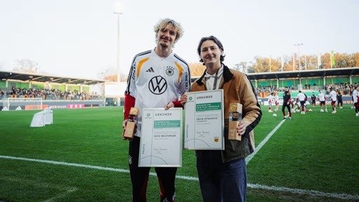 当地时间本周一,德国足协在官网发布公告,宣布德国国脚沃尔特马德获得2024-25赛季公平竞赛奖。同时获奖的还有SG Markgr?flerland青年队主帅埃尔温-费塔霍维奇。在周一德国国家队在沃尔夫斯堡进行公开训练时,德国足协为沃尔特马德和埃尔温-费塔霍维奇颁奖。
