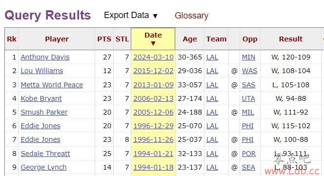 根据数据统计,斯玛特此役7次抢断,这是队史近29年里的最多。最近29年还做到过单场7抢断的湖人球员有浓眉、路威、慈世平、科比、斯马什-帕克和埃迪-琼斯。