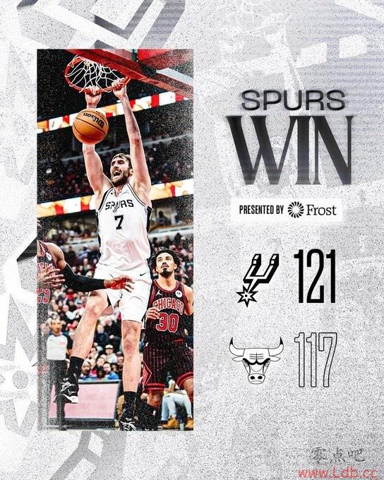零点吧11月11日讯 马刺客场121-117险胜公牛。