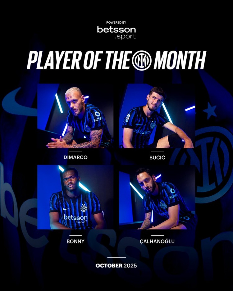 零点吧足球11月11日讯 国米官方公布10月队内最佳球员候选,迪马尔科、佩塔·苏契奇、博尼、恰尔汗奥卢四名球员获提名。