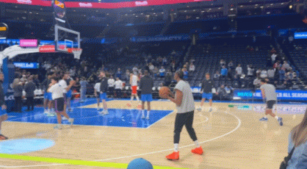 零点吧11月12日讯 杰伦·威廉姆斯在今天主场对阵勇士赛前进行投篮训练,他那只正在恢复中的右手腕仍然缠着护具。