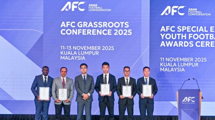 北京时间11月11日,2025年亚足联草根足球大会及“2025亚足联草根足球特殊贡献奖”颁奖仪式在马来西亚吉隆坡隆重召开。由中国足球协会推荐的谭杰荣获“2025亚足联最佳草根足球领导者奖”,青苗联赛摘得“2025亚足联草根足球最佳赛事奖”,为中国草根足球赢得国际赞誉。