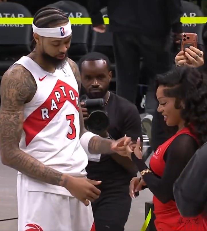 赛后,英格拉姆在场边和歌手女友格洛丽亚在场边秀恩爱。