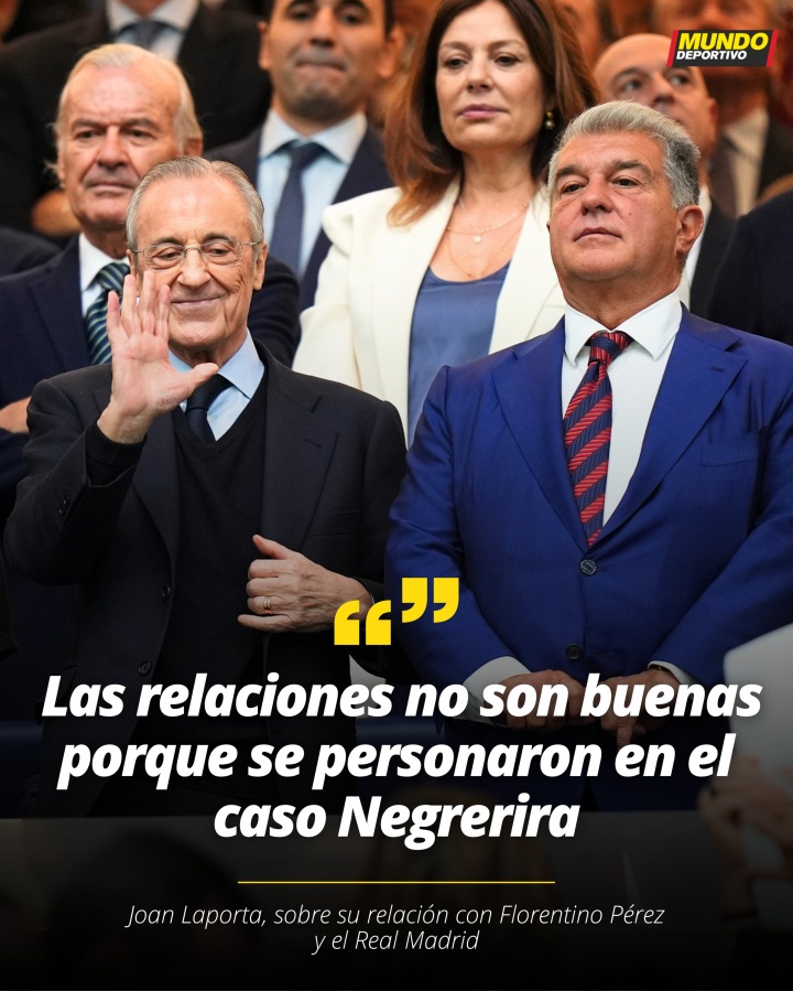 拉波尔塔说:“没错,(在伯纳乌观战国家德比)是出于尊重。所谓‘离婚’无从谈起,因为我们从未‘结婚’。双方关系不睦是因为他们介入了内格雷拉案。对方不断提出指控,法官需要审理这些事项……这背后必定是出于某种目的。我们以尊重态度对待竞争。有人说皇马曾为巴萨海外赛设置障碍,我们并未就此争论,当时我们已准备好参赛,因为这对推广西甲和巴萨都有利。现在我们将在比利亚雷亚尔的主场进行比赛,希望一切顺利。”