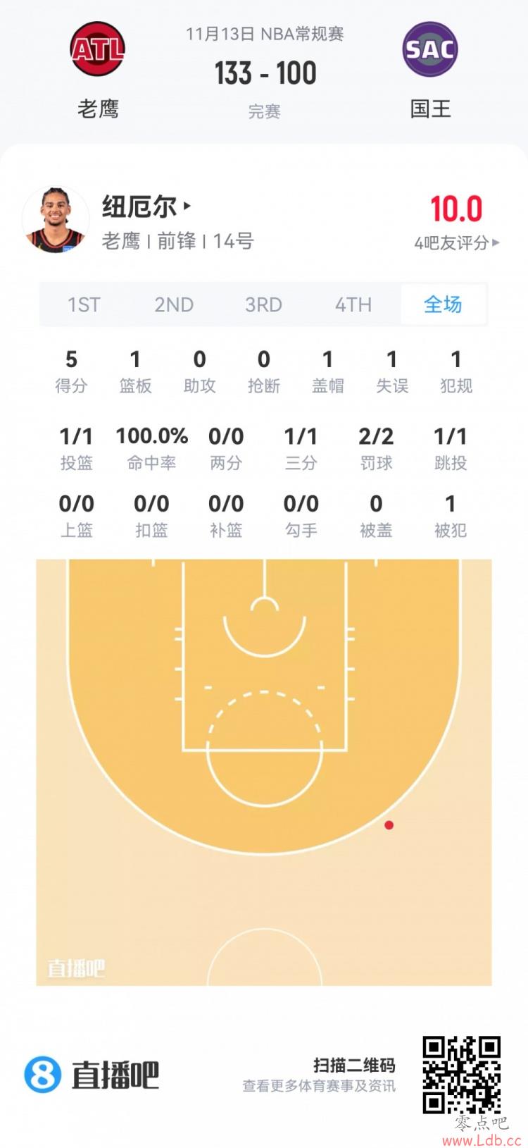 老鹰首轮23号秀阿萨·纽厄尔 登场7.8分钟