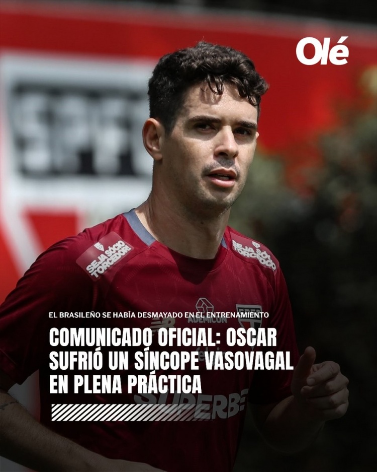 零点吧足球11月14日讯 圣保罗俱乐部官方声明,奥斯卡在训练中突然晕倒,并被送往阿尔伯特·爱因斯坦医院的心脏科。经诊断,奥斯卡所经历的是血管迷走神经性晕厥(也称为血管迷走性虚脱)。