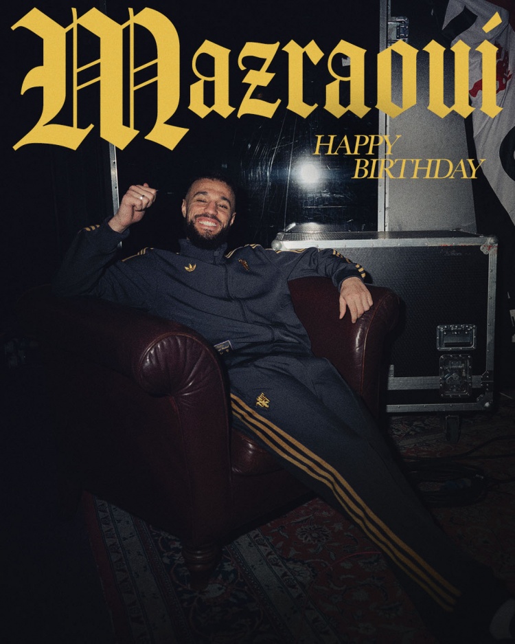 曼联官方社媒晒出为马兹拉维制作的生日海报,配文:“祝你生日快乐,诺塞尔(马兹拉维)!”