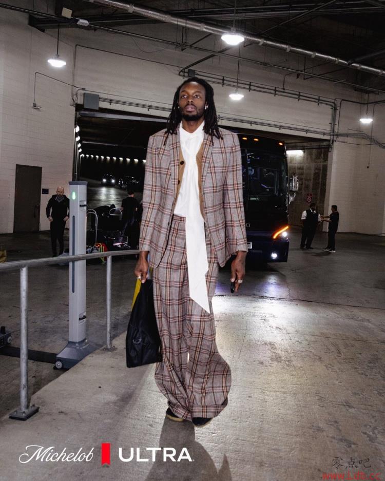 今日没小杨!开拓者亮相休斯敦 格兰特一身格纹套装时尚感拉满