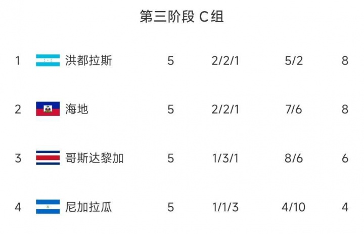 3、C组洪都拉斯、海地、哥斯达黎加均有机会