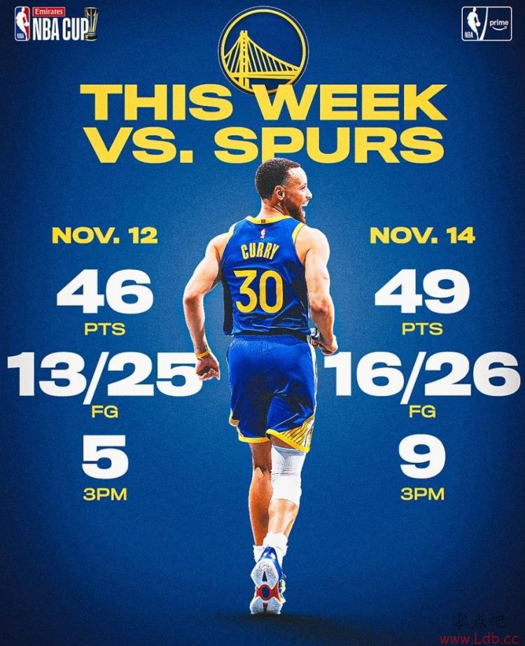对马刺球迷不太友好!库里本周表现:面对马刺得46分和49分