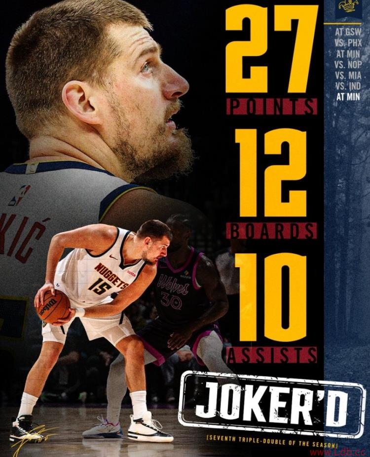 随后,掘金官方又修正了约基奇的数据,为27分12篮板10助攻。